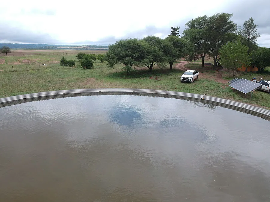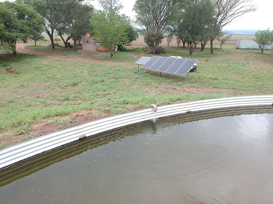 Sistema solar de bombeo sumergible, en pozo somero de 20 mts de profundidad, abastecemos con 20 mil litros de agua por día a 400 cabezas de ganado.